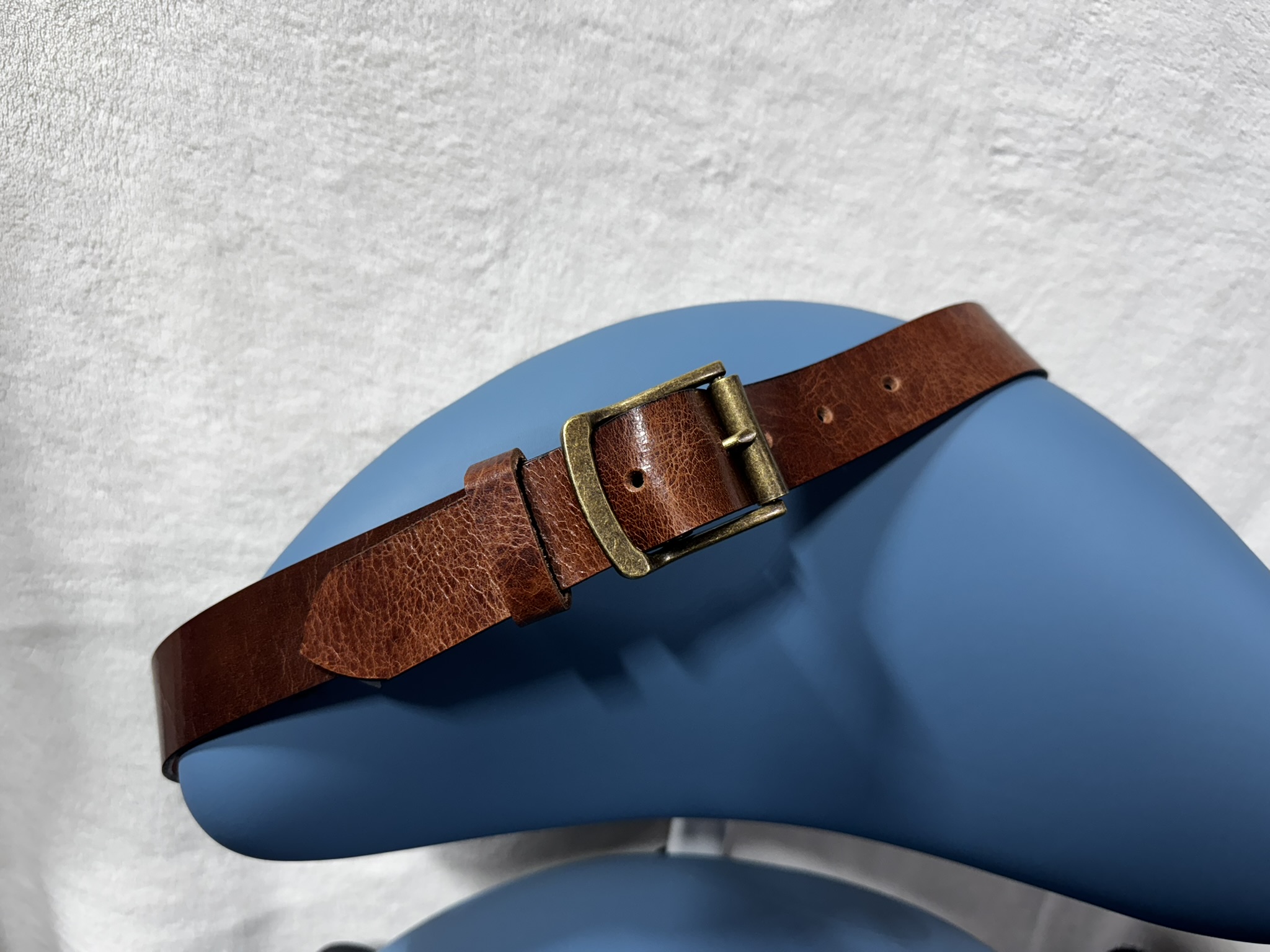 This belt is made from sturdy, long lasting water buffalo leather. It’s made from the popular crazy horse finish in medium brown with a heavy antique brass colored buckle. Belt holes are spaced 1 inch apart. Belt is 1.5 inches wide. The heavy duty buckle acts as a second belt loop holder making this belt super secure. It’s sure to please! Want a different buckle? Message us and we’ll get it sorted for you.