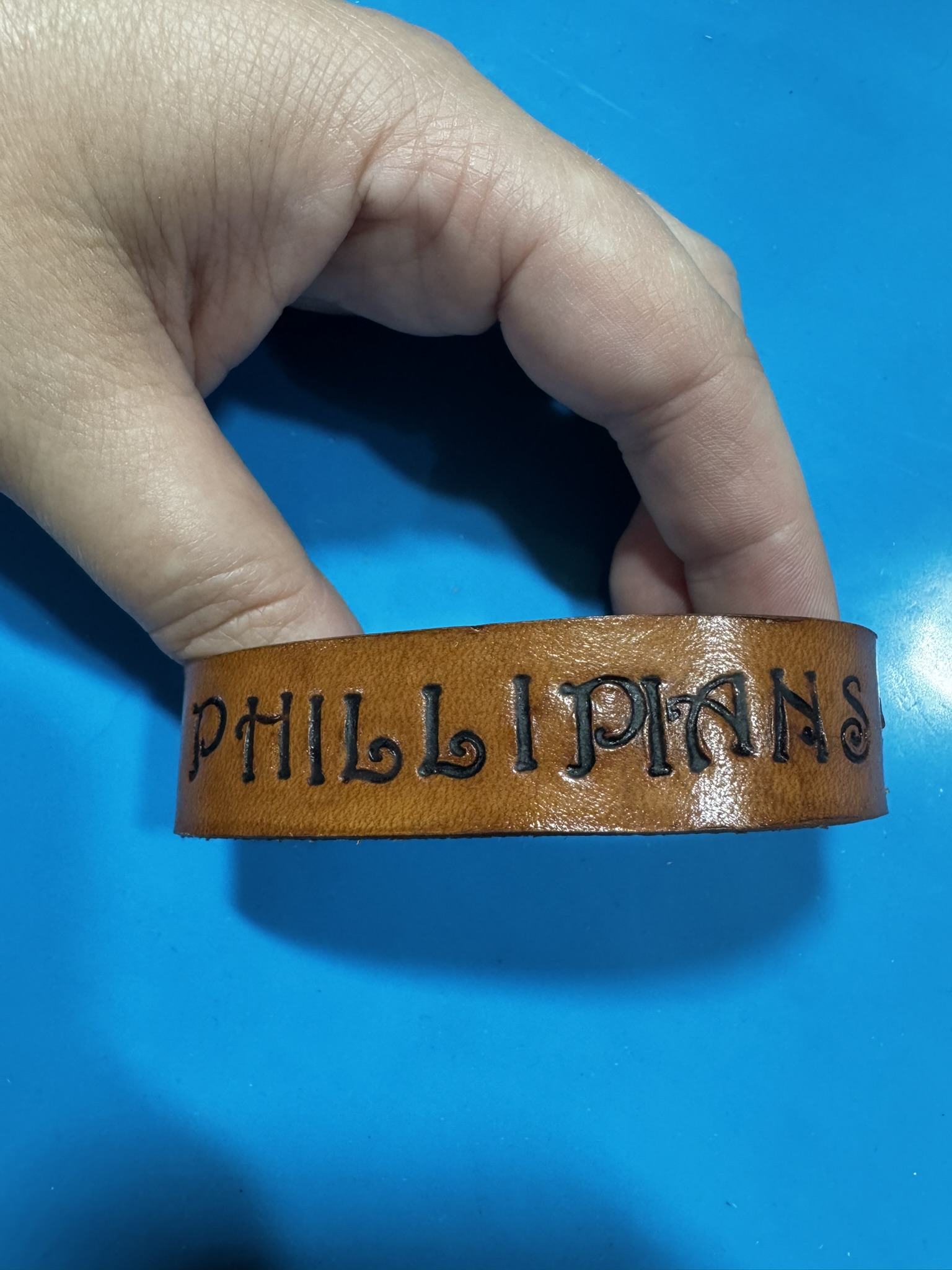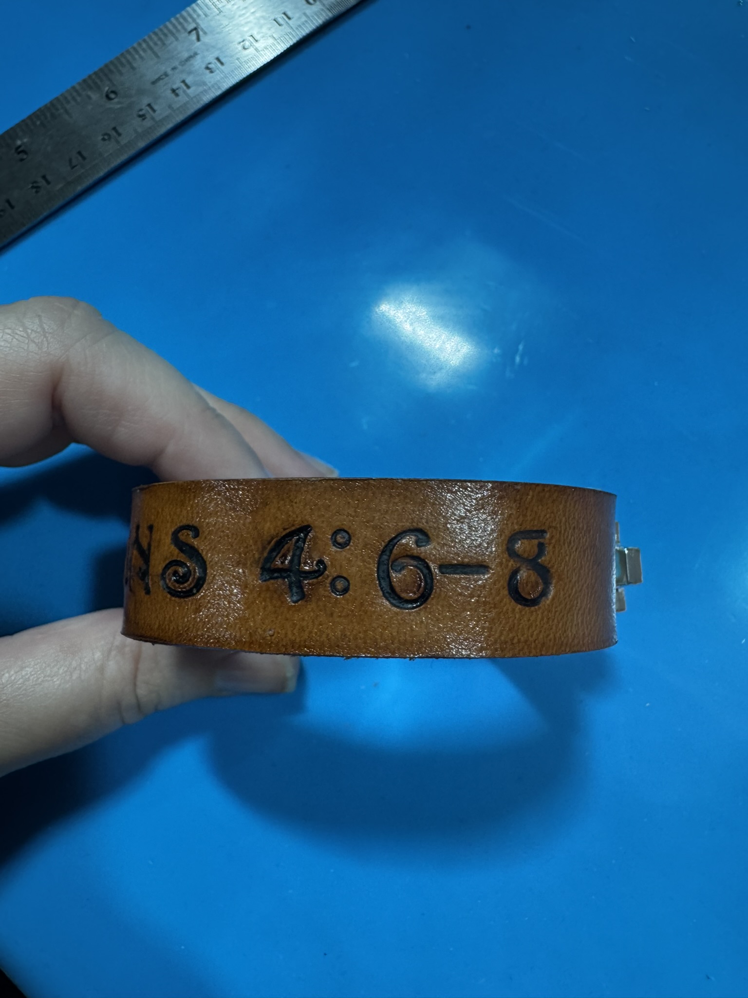 I use lightweight leather to craft this leather cuff style bracelet. Edges are finished with beeswax. I hand cut, hand stamp, and hand dye these lovely bracelets.