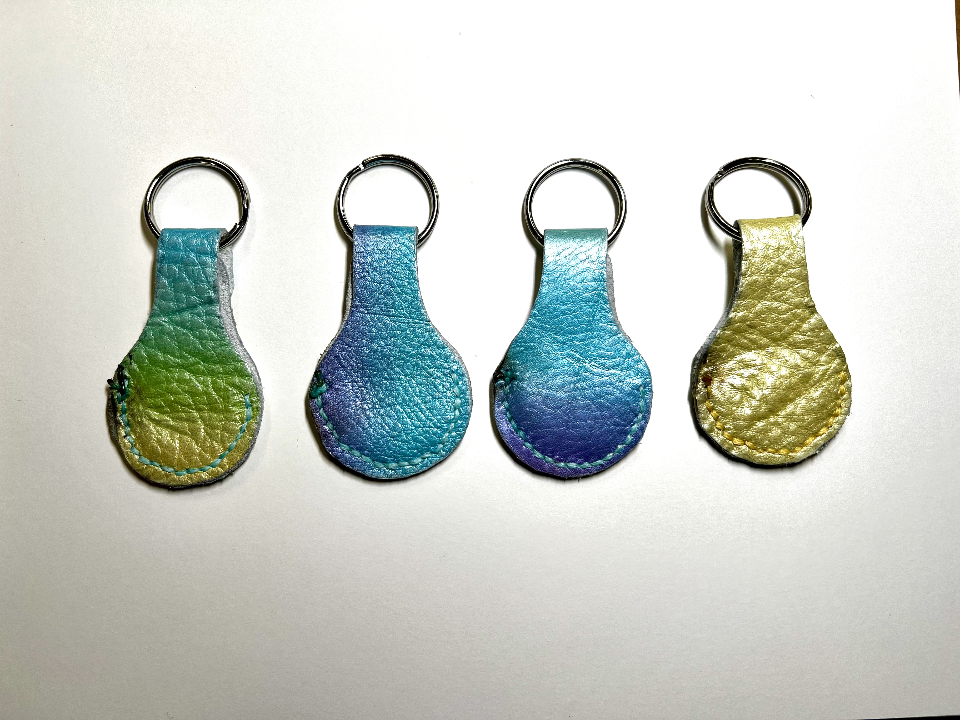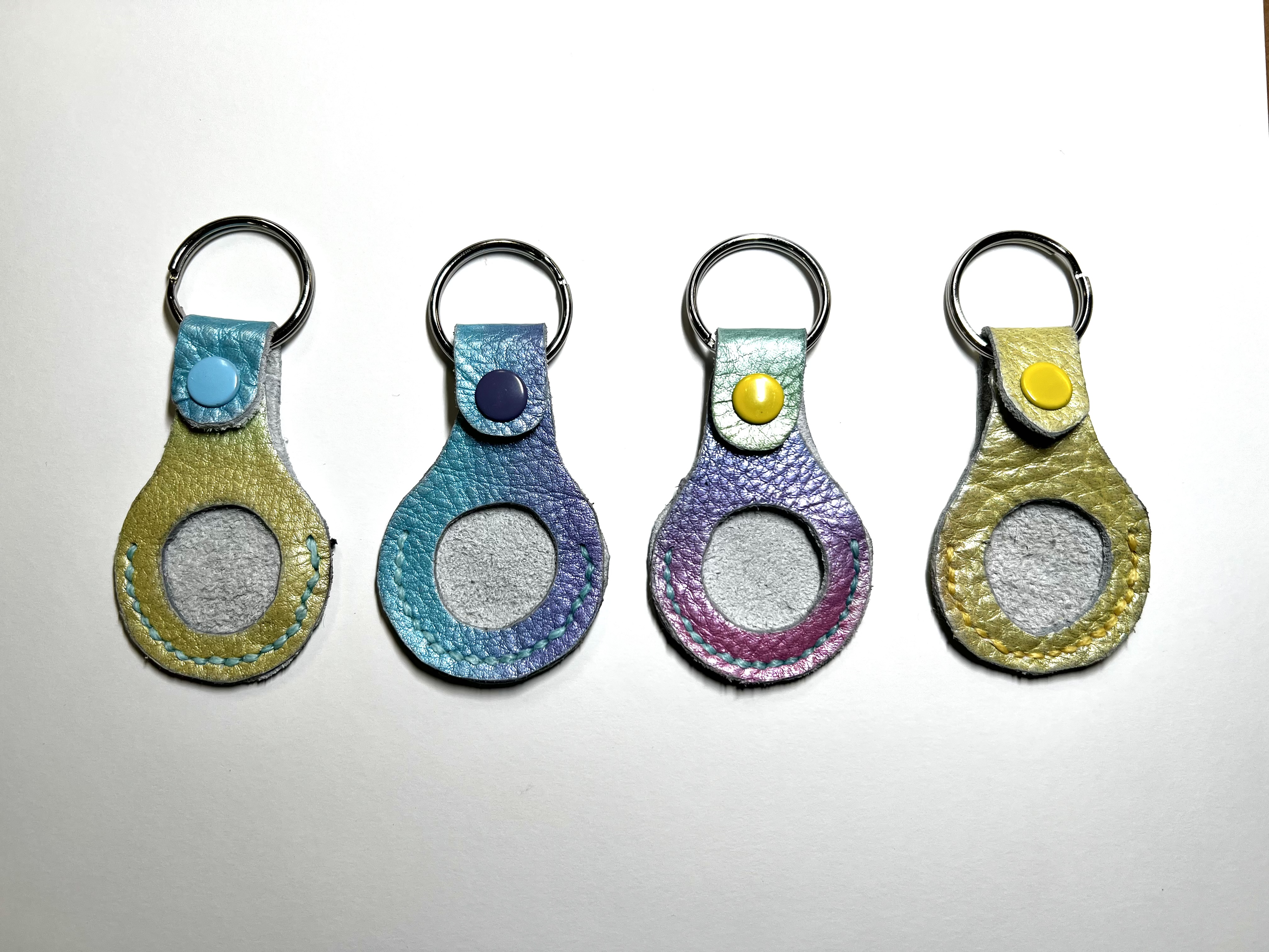 These Apple AirTag holders are absolutely gorgeous! Hand cut, hand stitched and a hand applied water resistant finish gives these character you won’t find in mass produced products from a factory. This is a limited edition, soft, supple leather that just hugs your Apple AirTag. Color will vary; pictures are representative of what you may receive. Order several, once they’re gone they won’t be restocked. If you need nickel free hardware, please message me prior to ordering to check availability.
